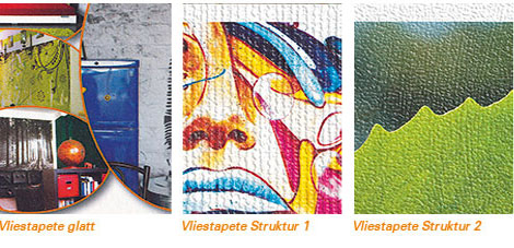 Alle Vliestapeten (außer Fineart) sind wasser- und lichtbeständig und außerdem noch schwer entflammbar nach B1-Zertifikat sowie frei von PVC und Weichmachern. Die stukturierten Vliestapeten wird aus reinem Vlies heißverprägt, was die Widerstandsfähigkeit der Oberfläche enorm erhöht.